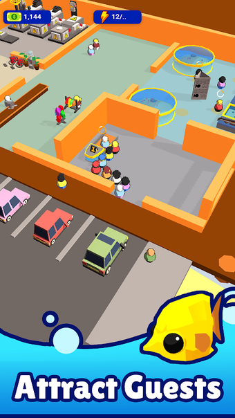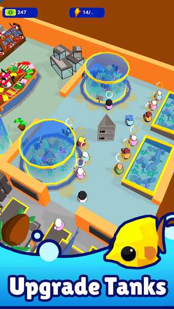Idle Aquarium to gra symulacyjna na platformę Android, która pozwala graczom na stworzenie i zarządzanie własnym akwarium. Rozpoczynając od małej wystawy, gracze mogą przyciągać gości, sprzedawać bilety i zarabiać pieniądze, co umożliwia dalszą rozbudowę i tworzenie bardziej imponujących eksponatów. Kluczowym elementem rozgrywki jest dekorowanie i ulepszanie strefy przyjęć, co przyciąga więcej klientów i zapewnia im zadowolenie poprzez badania morskie oraz odpowiednią opiekę nad rybami.
